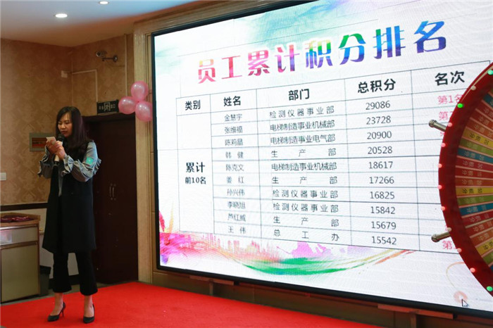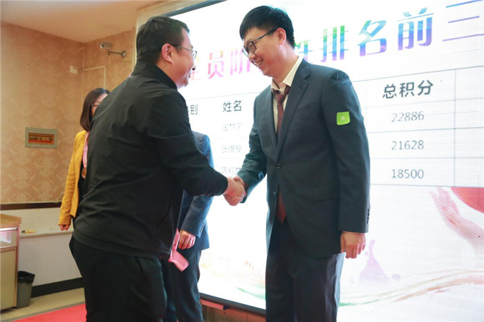隨后,由人力資源部部長楊萍公布階段性積分的排名,由蘆永軍總經理為積分排名三甲的員工頒發獎牌以及按照各部門積分排名情況為員工頒發獎品。